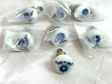 Limoges Blue and White Porcelain Floral Knobs Cabinet Drawer Pull Set (6)