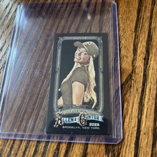 The Livvy Dunne 2025 Allen & Ginter Black Border Mini trading card is a sought-after collectible item for baseball fans. This original card, part of the 2025 Topps set, features the Major League Baseball player's autograph in hard signed format. Made of card stock with a thickness of 20 Pt., this English-language card is in near mint condition and is a valuable addition to any sports memorabilia collection. With its connection to the MLB World Series and the player's unique attributes, this card is a must-have for collectors looking to own a piece of baseball history.