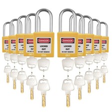 Lockout Tagout Lock Set-10pcs Keyed Different Yellow, 2 Keys, OSHA Compliant ...