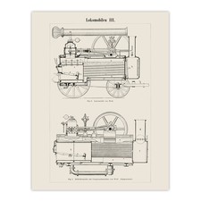 This antique illustration celebrates engineering and design, perfect for offices or industrial interiors. This print is individually printed onto luxurious smooth satin paper. This is a new and high-quality art print.