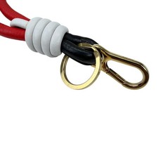 Title: LOEWE Keychain Key Ring Knot Multicolor. Color: Red, White, Black, Multicolor, Gold hardware. There are very minor scratches on the ring and leather. Product Number: AT3597-L300-D0206-RD3.