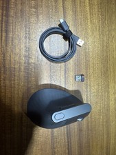 This is a Logitech MX master vertical mouse. I’m including the unused USB cable. And the unused dongle. This also connects via Bluetooth, so you may not need the dongle. But it is included in case you do. The mouse is used, but in perfect working order. There are some light signs of use, and I did my best to capture it in the photos from every angle.
