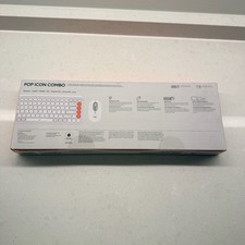 Logitech POP ICON COMBO Bluetooth Keyboard and Mouse in White and Orange. This stylish, modern set features a compact wireless keyboard with scooped keys and a silent click mouse. Designed for versatility, it supports multi-device pairing and is compatible with Windows, macOS, iPadOS, iOS, ChromeOS, and Android. Perfect for a colorful and productive desk setup. Key features: - Bluetooth connectivity for seamless wireless use. - Customizable shortcut keys. - Long battery life (up to 36 months for keyboard, 24 months for mouse). - Quiet typing and clicking experience. New in original packaging. Box may show minor shelf wear.