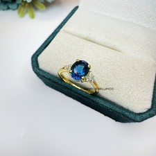 London Blue Topaz Ring, 925 Sterling Silver, Three Stone Ring, Lab Created