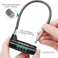 Long Shackle Combination Lock, 4.41x2.13x0.71'' Cable Lock, 4 Digit Resettabl...