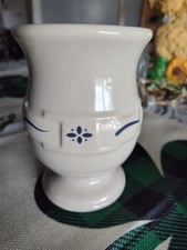 Longaberger Pottery Ceramic Coffee Mug Beige Blue Pattern Glossy Round