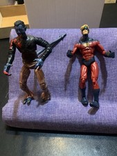Varied Mostly Marvel but has 1 Spawn figure in various conditions. The thing has broken fingers on 1 hand and Doc Ock is missing a tentacle . What is pictured is what you get.they are definitely missing some accessories.
