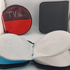 Lot of three generic disk booklets and in good condition with minor shelf wear. Comes in 3 Colors red, blue, and black. The red has '"TV Show" written on it with 20 disk slots. The blue has a hard shell and 24 disk slots. The black booklet only has 12 disk slots. let us know if you have any questions we are happy to help!