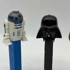 This lot of vintage Star Wars Pez dispensers includes four characters: Darth Vader, Chewbacca, C3PO, and R2D2. These collectible items are perfect for any fan of the franchise and are in excellent working condition. Add them to your collection or use them for display. Get your hands on these iconic Pez dispensers today!