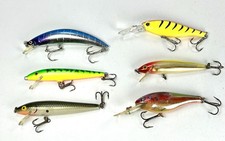 This lot of 6 various crankbaits includes lures from brands like Rebel, Rapala, and unbranded. These fishing lures are designed for freshwater fishing and come in multiple colors, making them suitable for catching all freshwater fish species. Made from plastic, these crankbaits have positive buoyancy and a fish-shaped design, making them effective for attracting and catching fish in freshwater environments. Perfect for fishing enthusiasts looking to add a variety of lures to their collection for a diverse range of fishing experiences.