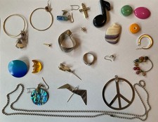 Auction lot of assorted odds & ends jewelry pieces -- beaded necklaces, earrings, pendants, rings, etc. Perfect for crafters or artists working in mixed media. Feel free to ask for details of anything specific.