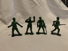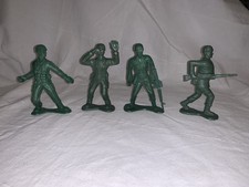 Lot of four soldiers. Four inches tall. Used with scuff marks and some have an initial on the bottom.