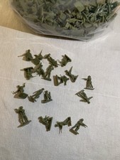 Huge lot of vintage green and tan army men in various poses. Green set includes a raft and a boat.