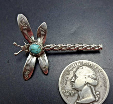STERLING SILVER DRAGONFLY PIN/BROOCH with TURQUOISE. STERLING:yes, stamped STERLING. 260307 TUSSWS03.
