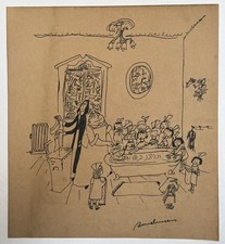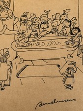 Ludwig Bemelmans (Handmade) Drawing On old Paper Signed & Stamped Mixed Media