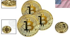 Luxurious 3-Pc Bitcoin Coin Set - Gift-Ready, Zinc Alloy with Display Cases