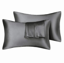 Luxury Satin Silk Hair Skin Pillowcase Set of 2. Grey Soft Bedding Standard Queen Pillow Cover. Microfiber fabric for optimal softness and easy care. They're silky soft against your skin, reducing facial creases and wrinkles. These solid color pillowcases are wrinkle free, stain and fade resistant, easy to care for. Envelope closure, no zipper, easy to take the pillow in or out. Good sewing stitch and exquisite workmanship bring a perfect combination of durability and softness.