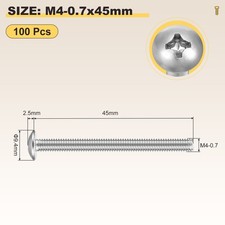 Machine Screws Phillips Head(M4-0.7x45) 100Pcs, Silver