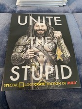 The Mad Magazine 2015 Special Loot Crate Edition "Unite The Stupid" Aquaman Cover is a unique and collectible magazine featuring a humorous take on the movie adaptation of Aquaman. With a special edition status and the iconic American Media Inc publisher, this English-language publication offers a blend of humor and satire that is sure to entertain fans of the genre. Perfect for collectors or those looking for a whimsical poke at the world of comic book movies, this Mad Magazine edition is a must-have for any enthusiast of pop culture parodies.