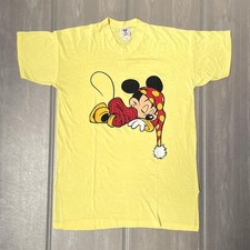 A very cute piece with Mickey sleeping wearing a nightcap printed on the front. It is a product that does not appear on the market, so it is considered to be very valuable. Color: sherbet yellow. #Famous painting T-shirt.