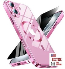 Magnetic for Case with Privacy Screen Protector & Full iPhone 16 Hot Pink