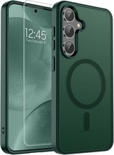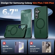 Magnetic for Samsung Galaxy S24 Plus Case / S25 Plus Case with Screen Protector,(Compatible with MagSafe)(Military Grade Drop Protection) Slim Translucent Shockproof Phone Case,Forest Green. Includes a 0.33mm thin HD tempered glass screen protector.