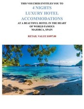 The "MAJORCA, SPAIN 5 Days/4 Nights Vacation Package" is a comprehensive travel package that offers a luxurious and relaxing stay in Majorca, Spain. With 4 nights of accommodation included, visitors can enjoy the beautiful beaches, stunning landscapes, and rich cultural experiences that Majorca has to offer. The package likely includes transportation from the airport, daily breakfast, and suggested activities for each day of the trip, allowing visitors to fully immerse themselves in the beauty of this popular tourist destination.