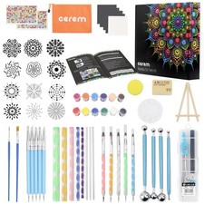 This is an ideal starter set with all your needs to make a mandala work. Not only the dotting tools and stencils but also 12 colors of paint, cardboard, gemstone stickers and easel to decorate your room.