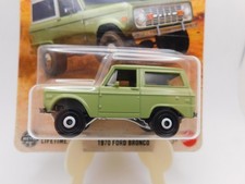 The Matchbox 1970 Ford Bronco #59 is a green diecast toy vehicle modeled after the classic mid-size SUV. Made in Thailand, this 1:64 scale replica features the iconic Ford Bronco design from 1970, staying true to its original specifications. With its attention to detail and authenticity, this collectible piece is a must-have for fans of cars, trucks, and vintage vehicles.