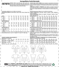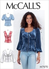 McCalls M7870 Sewing Pattern Misses Tops Fitted Bodice Sleeve Sizes 6-14