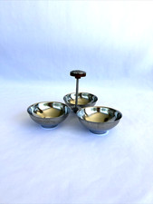 MCM International Decorator Stainless 3 Bowl Condiment Relish Dish With Handle
