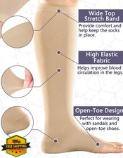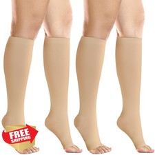 +MD 2 Pairs 20-30 mmHg Compression Socks Knee High Open Toe