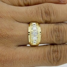 Men's 5-Stone Wedding Band Ring 2Ct Simulated Diamond 14K Yellow Gold Plated