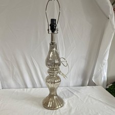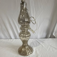 The Mercury, glass table lamp with a fluted bulbous base is a stylish and elegant addition to any indoor space. With a glossy silver finish and clear cord, this lamp exudes a modern and sophisticated aesthetic. The knob control allows for easy adjustment of the lighting intensity, while the corded electric power source ensures consistent illumination. Made of glass, this lamp offers a sleek and sleek design that is perfect for adding a touch of luxury to any room.