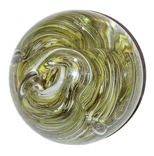 metal ornate leaf tripod stand holding flat bottom Blown Glass Crystal sphere