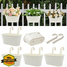 Metal Railing Planters 5 Pack Hanging Flower Pots Cream White Hooks