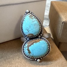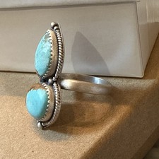 MINE #8 TURQUOISE Double Stone Ring Size 7 Solid 925 Sterling Silver Southwest. Gorgeous stones, beautiful setting. New, never worn. Please email if any questions.