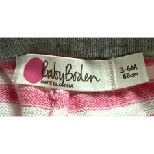 Mini Boden knit jogger pants make everyday outfits feel extra sweet. Pink, white, and gray stripes add a playful pop, while the soft 100% cotton knit keeps baby comfy from tummy time to stroller walks. Ribbed cuffs help keep legs warm, and the adjustable drawstring waist gives a snug, flexible fit. Great for playdates, daycare, lounging, or cozy travel days. Condition: pre-owned. Keywords: Mini Boden, Baby Boden, baby joggers, knit pants, striped pants, pink white stripes, cotton baby pants, drawstring waist, ribbed cuffs, unisex baby, 3-6 months, 68cm, baby lounge pants, playtime outfit, toddler pants