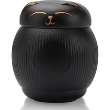 Material: Ceramic. The round design of this cat urn makes it even cuter. 【Cute Design】 The urn is designed like a cute smiling kitten. Material: Ceramic.