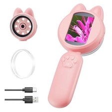 Mini Digital Microscopy, 2-inch IPS Screen 200X Magnifying Glass Handheld Pink
