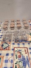 Style: Set of 12 clear mini glass bottles with matching cork lids in a compact plastic tray Material: Transparent glass bottles with natural cork stoppers and a clear molded plastic holder Unit quantity: 12 individual bottles and 12 corks arranged in a 3 x 4 grid Details: Round straight-sided bottles, wide mouths for easy filling, snug-fitting corks, stackable plastic storage tray for organizing or display Suggested uses: Craft storage, wedding or party favors, sand art, message in a bottle gifts, spices, herbs, glitter, beads Keywords: mini glass vials, cork top jars, apothecary bottles, sample containers, DIY craft supplies