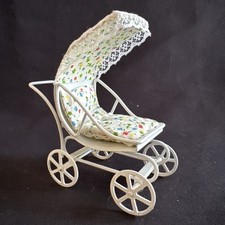 Miniature Baby Buggy Pram White Wire Canopy & Cushion