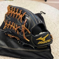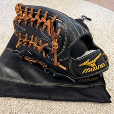 Size: Adult, Left-handed thrower. Model: Mizuno Pro. This Mizuno Pro softball glove is made from premium leather, designed for outfielders. Color: Black.