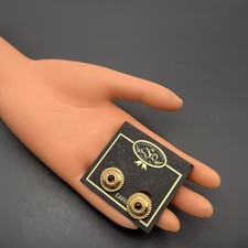 Mod/modern Catherine stein gold plated clip on button earrings ~ new old stock Dates : late 20th century Materials : gold tone metal rhinestones cabs Measures : Earrings are 5/8 inches in max width . Condition : New old stock . Please Note ~ As vintage items are previously loved /used please do expect some minor wear like surface wear /dents /dings and metal discoloration . All items are carefully inspected and major flaws will be listed separately ~ Plenty of photograph are added so please study the photos carefully as it is also part of description or if you need more pictures just message us we will be happy to provide them :)... Exported By ExportYourStore Powered by ExportYourStore.com