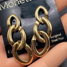 Mod/modern Monet gold plated dangle /drop earrings ~ new old stockDates : late 20th century Materials : gold tone metal Measures : Earrings are 1 1/2 inches in drop length x 1/2 inches max width . Condition : New old stock . Please Note ~ As vintage items are previously loved /used please do expect some minor wear like surface wear /dents /dings and metal discoloration . All items are carefully inspected and major flaws will be listed separately ~ Plenty of photograph are added so please study the photos carefully as it is also part of description or if you need more pictures just message us we will be happy to provide them :)... Exported By ExportYourStore Powered by ExportYourStore.com