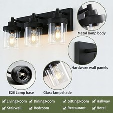 Minimalist Modern Design: Crafted from perfectly shaped transparent glass, this contemporary black wall lamp features sleek black bathroom fixtures equally suited for living rooms, entryways, patios, balconies, bedrooms, hallways, or bathroom vanity lighting.