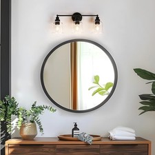Modern Bathroom Vanity Lights, 3-Light Vanity Light Over Mirror Farmhouse 22" Black Bathroom Light Fixtures with Clear Glass Shade for Bedroom, Hallway, and Entryway. Modern Elegance for Your Bathroom: This sleek black bathroom vanity light features a stylish clear glass that exudes modern elegance.