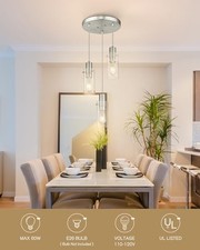 Modern Brushed Nickel Pendant Light, Cluster Pendant Lights Kitchen Island with Clear Glass Shade, 3-Light Hanging Lights for Kitchen, Dining Room, Living Room, Bathroom, PL120-BN-CL. [Wide Application] This hanging light fixture with elegant and rustic look, not only a farmhouse lighting, but also a modern beautiful decoration.