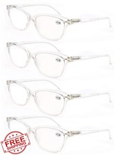 MODFANS Reading Glasses 1.5 Clear Cateye Women Spring Hinge Pouch 4 Pack