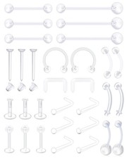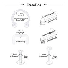 [Material]: Clear piercing retainers are made of clear bioflex, super smooth surface. Nickel and Lead Free, Hypoallergenic. [Feature]: Clear piercing retainer are great for healing; Clear nose studs, plastic belly button rings, plastic nipple rings, clear earrings and clear septum rings are friendly for work surgery sport;.